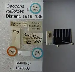 - ^ Distant, W.L. (1919). "Descriptions of new species and genera of the Heteropterous family Reduviidæ from British India". Annals and Magazine of Natural History. 4 (20): 71–79. doi:10.1080/00222931908673872. ISSN 0374-5481.