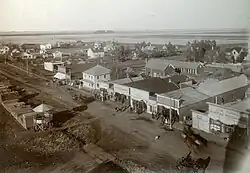The first residents of the town were businessmen who had come to support the needs of new settlers to the area. The town was first called Norton because the first buildings of the town were adjacent to land owned by George Norton. However, when the railroad came in 1881, the name caused an issue, since there was already a nearby town of Norton in Minnesota.[5]