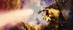 BUF Compagnie served as the lead visual effects vendor working on the film,[115] with Digital Domain also providing work on the film.[116] some of the software used for the visual effects were Autodesk Softimage.[117] Branagh stated that BUF, who developed the effects for the race through space, were inspired by Hubble photography and other images of deep space. Branagh stated he sent paintings from classic studies by J. M. W. Turner to Digital Domain when creating Jotunheim.[118] Peter Butterworth, VFX supervisor and co-founder of Fuel VFX, said the most challenging task was interpreting what the Bifröst would look like, "You can't Google what these things look like—they are totally imagined and within the heads of the stakeholders. So to extract that and interpret it for the big screen was an interesting challenge creatively. Technically, probably creating fluid simulations that could be art-directed and used for both the Bifröst and Odin's chamber shots. Part of the difficulty with solving these is that we had to ensure they would work in stereo.[119] In the film, Odin enters what is known as the "Odinsleep" in his chamber to regenerate. Butterworth stated, "For Odin's Chamber, we developed a dome and curtain of light rays that hover over Odin's bed. This dome of light suggests harnessed power and energy that revitalizes him as he sleeps. We took a lot of reference from the natural world such as the corona of the sun and gave the sleep effect plenty of volume and space".[119]