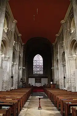The nave of the church survived, and was restored as the Parish Church of St Mary and St Botolph in 1638. At this date the aisles were demolished and the arcade openings walled up. Some stained glass was installed that possibly came from the Steelyard, the London trading base of the Hanseatic League. The present east end, in the Norman style, is by Edward Blore, and dates from 1840 to 1841.[2] The church is a Grade I listed building.[4]