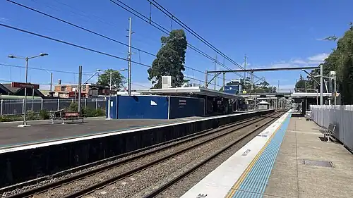 ![]() Southbound view from Platform 3, with station access upgrades underway, March 2023 | |||||||||||