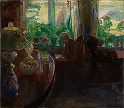 In 1915, Erichsen appears to have suffered from a nervous breakdown, precipitated by a troubled relationship with the composer, Reidar Brøgger (1886-1956).[1] After recovering, he worked in a quieter style, doing most of his work during summers in Holmsbu. His later works focus on the countryside around Lillehammer Municipality, where he lived for extended periods. He also created numerous still lifes, framed by the window of his hotel room, and often went for long periods without painting.[2][5]