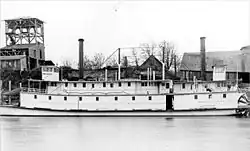 The crew kept 120 pounds of steam pressure in the boiler, just in case the nine lines running to shore, and attached to railroad tracks, trees, and rocks, proved insufficient to hold the steamer.[18] If that occurred, their only option would have been to go over the falls.[18] The boat was also in danger during this time from floating rafts of sawlogs which came a foot from the hull.[18]