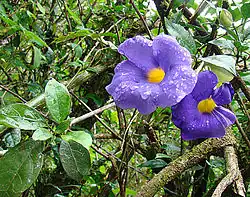 Thunbergia battiscombei, also known as the blue glory vine,[2] is a species of flowering plant within the family Acanthaceae. It is sometimes used as an ornamental garden plant for its beautiful large blooms and leafy foliage. Thunbergia battiscombei is also cultivated as a herb within its native range.[3] Some people superstitiously believe the herb is able to help remedy mental imbalance, curses and black magic.[4]