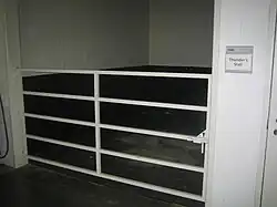 Thunder has other duties off the field, and has appeared at many public exhibitions and charity functions in the Denver area, including visits to schools and hospitals.[29] He has appeared frequently as part of the color guard at Denver's annual National Western Stock Show.[2] Thunder has gone up elevators, walked through indoor tunnels, has been ridden among the banquet tables at Magness-Blake's Western Fantasy fundraiser, and has attended indoor and outdoor press conferences.[4][12][20][30]