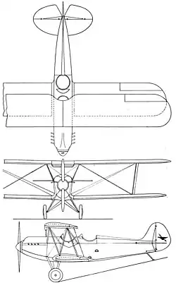 The Thunderbird made its first flight 11 July 1926.[1] By the autumn of 1927 numerous modifications had been made in preparation for production.[2] These included laminated, rather than solid, wing spars, Warren girder ribs and a steel, rather than wire, cross-braced fuselage. A new, split axle undercarriage was introduced, with axles hinged from the central fuselage underside and equipped with rubber-chord shock absorbers. The tailskid was now steerable.[2][1]