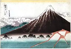 Thunderstorm Beneath the Summit (Japanese: 山下白雨, Hepburn: Sanka hakuu), also known as Rainstorm Beneath the Summit, or sometimes Black Fuji (黒富士 Kurofuji) is a woodcut print by the Japanese ukiyo-e master Hokusai (1760–1849). It is one of the most famous prints from his celebrated Thirty-six Views of Mount Fuji series, published c. 1830–1832.[1][2]