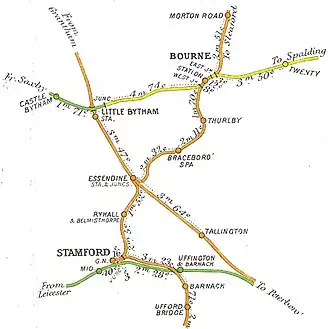 Thurlby railway station was on the Bourne and Essendine railway; it opened in 1860 and closed in 1951. The railway workers cottages 3 to 9 Station Road, built in 1866 are nearly the oldest properties in the village, they were famously hit by an air bus in the 1920s.