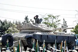 Tiam (چشم ها lit. Eyes) is an Iranian main battle tank optimized from the Sabalan with a 105 mm gun.[1] The tank was announced on April 13, 2016, and has a similarity to the Type 59 turret, with a Sabalan chassis, which is an Iranian modernized version of the M47M Patton.[2] Iran stated that it possessed a brand new turret housing a smoothbore 105 mm cannon. Iran said it had a new fire control system, and new communication equipment, sideskirts and other improvements and cost less than half of the price of the Zulfiqar main battle tank.