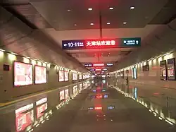 A network of underground passageways exist under the station, providing exit points for passengers from mainline platforms and connecting to the Tianjin Metro which has a transfer hub between its three lines below the station.[13]