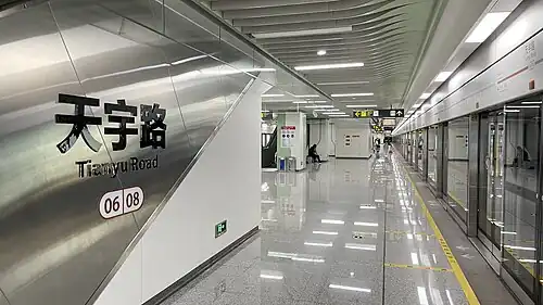 Tianyu Road Station is a metro station at Chengdu, Sichuan, China. It opened on December 18, 2020 with the opening of Chengdu Metro Line 6.[1][2][3]