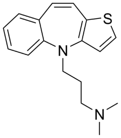 Tienopramine is a tricyclic antidepressant (TCA) which was never marketed.[1] It is an analogue of imipramine where one of the benzene rings has been replaced with a thiophene ring.
