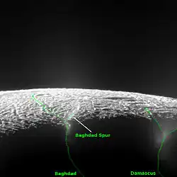 - ^ "New Names Approved for Use on Enceladus". www.saturntoday.com. SpaceRef Interactive Inc. 2006-11-17. Archived from the original on September 13, 2012. Retrieved 2008-09-20.