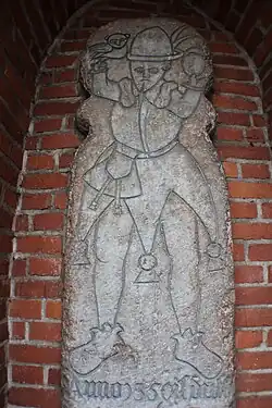 Upper half of "Eulenspiegel's tombstone" in Mölln, Schleswig-Holstein.