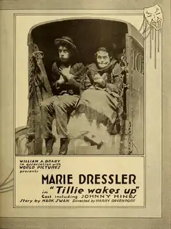 Tillie Wakes Up, also known as Meal Ticket (Working title: Tillie's Night Out),[1] is a 1917 American slapstick comedy film,[2] and a quasi-sequel to Tillie's Punctured Romance (1914) and Tillie's Tomato Surprise (1915) starring Marie Dressler as Tillie for the third time, albeit with a different last name in Tillie Wakes Up, which could be explained by the fact that her character has been married. The film was produced by Peerless Pictures Studios and World Film Corporation,[1] directed by Harry Davenport, and written by Frances Marion from a story by Mark Swan. The supporting cast features Johnny Hines, Frank Beamish, Rubye De Remer, Ruth Barrett and Jack Brawn.
