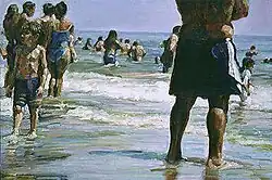 His most common subject matter is the architecture of New York City or scenes of pedestrians. Though a contemporary realism painter, his use of light in these works gives them an impressionistic quality. Dorn Townsend writes in the Manhattan Times, "The everyday aspects of the city have seldom been translated with such brio and glowing reverence" and "every color and every gesture stirs inside the viewer"[4]