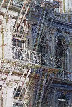 Tim Folzenlogen (born May 2, 1952) is a contemporary realist painter based in New York City. His work has been shown in more than 50 solo shows, and he has sold more than 1000 paintings.[1] Most of his works depict architectural details in New York City, and the way features of buildings are illuminated by slanting rays of light.
