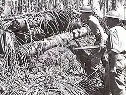 On 5 August, the 2/10th Battalion boarded the Dutch transport SS Both at Brisbane.[22][23] Seven days later the battalion landed at Milne Bay in the Territory of Papua, where it and the rest of the 18th Brigade reinforced the Militia units from the 7th Brigade that were defending the area. Two weeks later the Japanese landed a force at Milne Bay in an attempt to capture the airfields that the Allies had established there.[24] The Australians and their Allies won the ensuing Battle of Milne Bay decisively. After the initial Japanese lodgement was held by the Militia's 61st Battalion, the 2/10th relieved them before taking part in hard fighting around a mission station known as the KB Mission, during which the battalion lost 43 killed and 26 wounded.[23][25]