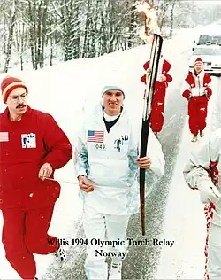In 1994, Willis was selected to run with President Bill Clinton before the Lillehammer Games and carried the Olympic torch in Oslo and Stone Mountain in 1994 and 1996 respectively.[8]