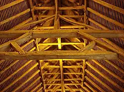 - Trusses (the slanting timbers forming the triangular framework at gables and roof)