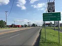 The primary roads providing access to Timberville are Virginia State Route 42 and Virginia State Route 211. SR 42 heads north and south, connecting to Virginia State Route 259 in Broadway to the south. To the north, SR 42 heads mostly through rural areas of southwestern Shenandoah County. SR 211 heads east from Timberville, connecting to Interstate 81 and U.S. Route 211 in New Market.