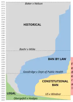 This article contains a timeline of significant events regarding same-sex marriage in the United States. On June 26, 2015, the landmark US Supreme Court decision in Obergefell v. Hodges effectively ended restrictions on same-sex marriage in the United States.