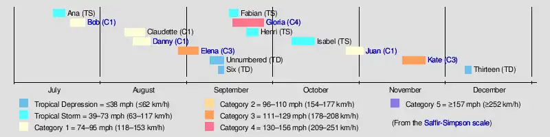 | Timeline of the 1985 Atlantic hurricane season | |||||