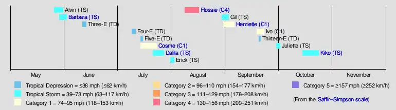 Tropical Storm Kiko (2007)Hurricane Henriette (2007)Hurricane Flossie (2007)Tropical Storm Dalila (2007)Hurricane Cosme (2007)Tropical Storm Barbara (2007)Saffir–Simpson scale