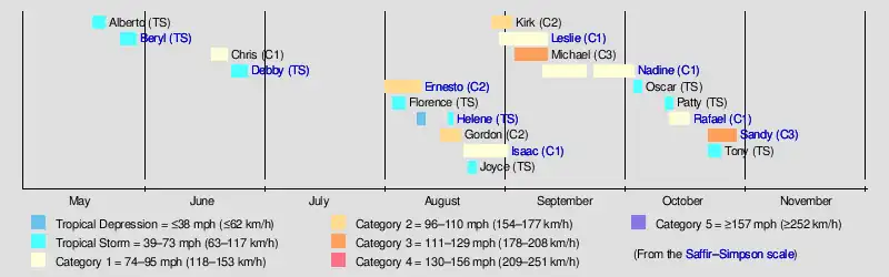 | Timeline of the 2012 Atlantic hurricane season | |||||