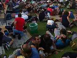 The IDF continued calling up additional reserves on 8 July, stating plans to call up 40,000 or more.[65] Due to the rocket fire from the Gaza Strip into Israel, the IDF Home Front Command closed all summer camps and banned gatherings of more than 300 people within 40 km of Gaza, while universities suspended studies and final exams, and people were cautioned to stay close to shelter.[66][67] In Gaza, 37,000 students who had completed high school had their graduation delayed.[68][69]