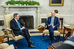 - ^ Biden, Joe [@POTUS] (May 10, 2022). "This afternoon, I met with Prime Minister Mario Draghi of Italy at the White House. We reaffirmed the strong and broad partnership between the United States and Italy and underscored our continued commitment to supporting Ukraine and imposing costs on Russia. https://t.co/4609Au0mQK" (Tweet). Archived from the original on September 7, 2022. Retrieved January 14, 2023 – via Twitter.