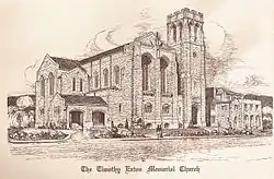 The Methodist Social Union of Toronto approached members of the Eaton family for their support in the creation of a church in the area. As a memorial to her husband, Timothy Eaton, Margaret Wilson Eaton and her son, John Craig Eaton, donated the land for the church and financed the construction of the original structures.[1][2]