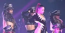 As Stoessel grew in her profession as a singer, she also found other inspirations. Her biggest influences according to Billboard are Beyoncé, Justin Bieber and Shakira.[170] In 2019, in a cover story for the Mexican edition of Seventeen, when asked which was the biggest of them, Stoessel replied: "Beyoncé! She's awesome, I love her. I love everything she does, her music, her shows are amazing, how she dances [...] I like that you can see how she is present in the smallest details."[257] This was already confirmed in previous years through her visual style (she worked with stylist Paula Selby Avellaneda, who had worked with Beyoncé),[258] live performances[259] and choreographies. Stoessel further cited Beyoncé as the person who she would like to collaborate with the most and also called the singer her "favorite artist": "She has inspired my career."[257][253] Stoessel has praised Spanish musician Alejandro Sanz, with whom she collaborated on the 2020 pop ballad "Un Beso en Madrid", which she described as a "dream come true", and Puerto Rican musician Daddy Yankee, who she cited as a "teacher", stating that collaborating with him would be a "dream"; she grew up listening to both artists and stated them as her influences in Latin music.[253]