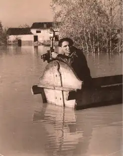 ![]() Petrelli at work during the flood in Polesine in 1951 | |