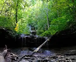 Tioga Falls is a 130-foot waterfall located near the outskirts of West Point, Kentucky.[1] The falls are fed from the nearby Tioga Creek, a tributary to the Ohio River. The falls are accessed by way of a 1.8 mi (2.9 km) trial managed by the U.S. Army Garrison at Fort Knox.[2] As Tioga Falls are within the boundaries of the military base, the trail is periodically closed to the public for safety reasons.