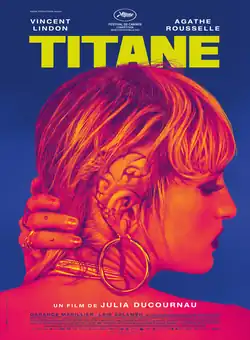 Titane (French: [titan] ⓘ, lit. 'Titanium') is a 2021 body horror psychological drama film[5][6] written and directed by Julia Ducournau. The French-Belgian co-production stars Agathe Rousselle in her feature film debut as Alexia, a woman who, after being injured in a car crash as a child, has a titanium plate fitted into her head. In adulthood, Alexia becomes a murderous car model with an erotic fascination with automobiles, leading to a bizarre sexual encounter that sets off an increasingly outlandish series of events. Vincent Lindon, Garance Marillier and Laïs Salameh also star.