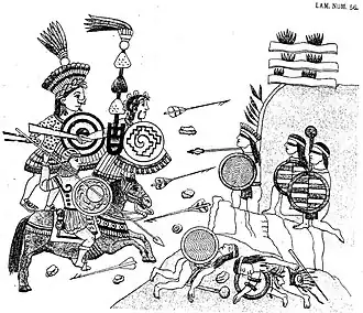 Frame 56 of the Lienzo de Tlaxcala showing the conquest of the town of Tlaltenanpan