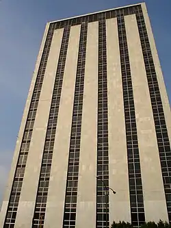 The Nonoalco-Tlatelolco housing project, built in the 1960s, is served by Metro Tlatelolco. The complex includes the pyramid-shaped Banobras building, which houses a 47-bell carillon. At 125 meters, this is the world's tallest carillon tower. A building with a facade of white marble was constructed by the government for and used by the Secretariat of Foreign Affairs (SRE). It is now used by the National Autonomous University of Mexico.