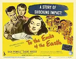 To the Ends of the Earth is a 1948 American film noir thriller film directed by Robert Stevenson and starring Dick Powell, Signe Hasso and Ludwig Donath.[2] It was released by Columbia Pictures.