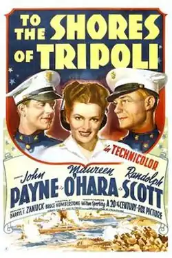 To the Shores of Tripoli is a 1942 American Technicolor film directed by H. Bruce Humberstone and starring John Payne, Maureen O'Hara and Randolph Scott. The film was produced by Darryl F. Zanuck. Its cinematography was nominated for an Academy Award in 1943.