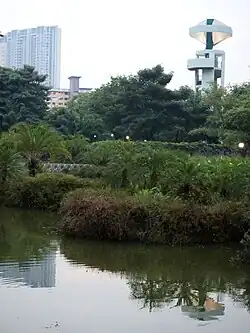 The park has no gates and is open to the public at all times. It is equipped with open-concept restrooms, a large pavilion with a stage for organised activities, gazebos,[1] foot reflexology footpaths and a jogging path.