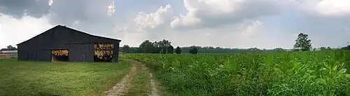 The tobacco barn, a type of functionally classified barn found in the USA, was once an essential ingredient in the process of air-curing tobacco. In the 21st century they are fast disappearing from the landscape in places where they were once ubiquitous.[1] The barns have declined with the tobacco industry in general, and U.S. States such as Maryland actively discourage tobacco farming.[1] When the US tobacco industry was at its height, tobacco barns were found everywhere the crop was grown. Tobacco barns were as unique as each area in which they were erected, and there is no one design that can be described as a tobacco barn.