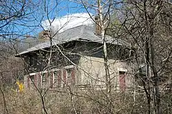 During the building of the Don Valley Parkway, the site was extensively modified. The river which used to pass through the site in a wide meander was straightened so that it was entirely cut off from the site. The former riverbed was turned into a pond and the bridge that used to cross the river is now only used to reach a parking lot.