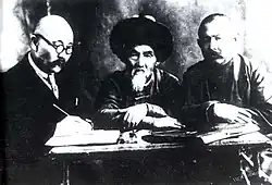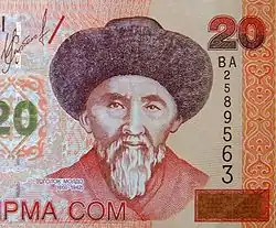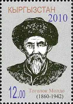 Togolok Moldo (Kyrgyz: Тоголок Молдо; real name: Байымбет Абдырахманов, Bayymbet Abdyrakhmanov; 10 June 1860 – 4 January 1942) was a Kyrgyz poet, Manaschi and folk song writer. Born in the village Kurtka in what is now the Ak-Talaa District, Naryn Region, Kyrgyzstan.[1] Togolok Moldo by his audiences – "togolok" means round-faced, "moldo" means an educated person. He is buried near the village of about 3,000 persons named for him in Ak-Talaa district.