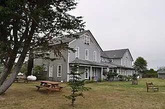 The Tokeland Hotel is situated on a peninsula with the Pacific Ocean to the west and the Willapa Bay to the south and east.