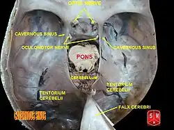 2. Inflammation around the cavernous sinus - deep in the skull behind the eyes.