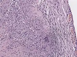 The cause of Tolosa–Hunt syndrome is not known. The disorder is thought to be, and often assumed to be, associated with inflammation of the areas behind the eyes (cavernous sinus and superior orbital fissure).[8] These granulomatous inflammations involve lymphocytes, plasma cells, and multinucleate giant cells. Clinical cases have shown that the disorder consists of the inflammation of multiple cranial nerves, with the highest prevalence of ocular motor nerves. In some cases, it also involves the inflammation of sensory nerves, specifically the trigeminal nerves.