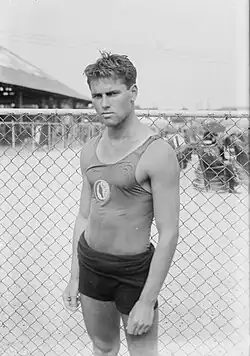 By 1921, Blake was living in Santa Monica, California, where he supported himself as a lifeguard and occasionally worked as a stuntman in films. Over the years he served as stunt double for stars such as Ramon Navarro and Clark Gable.[7] During this period he became active in competitive swimming. In 1922, he traveled to Pennsylvania to enter a ten-mile race on the Delaware River and triumphed over a field of the East Coast's top swimmers, breaking the existing record in the process.[8]
