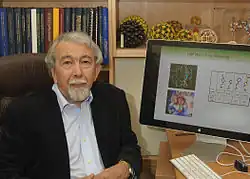Sir Thomas Leon Blundell, FRS FRSC FMedSci MAE (born 7 July 1942) is a British biochemist, structural biologist, and science administrator. He was a member of the team of Dorothy Hodgkin that solved in 1969 the first structure of a protein hormone, insulin. Blundell has made contributions to the structural biology of polypeptide hormones, growth factors, receptor activation, signal transduction, and DNA double-strand break repair, subjects important in cancer, tuberculosis, and familial diseases.[11] He has developed software for protein modelling and understanding the effects of mutations on protein function, leading to new approaches to structure-guided and Fragment-based lead discovery. In 1999 he co-founded the oncology company Astex Therapeutics, which has moved ten drugs into clinical trials. Blundell has played central roles in restructuring British research councils and, as President of the UK Science Council, in developing professionalism in the practice of science.[12]