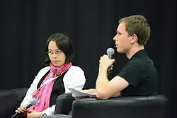 ![]() Latvian author Tom Crosshill at the 75th Worldcon in Helsinki, Finland, in August 2017. | |